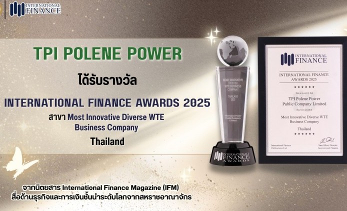 บริษัท ทีพีไอ โพลีน เพาเวอร์ จำกัด (มหาชน) หรือ TPIPP สร้างชื่อเสียงให้ประเทศไทยบนเวทีระดับนานาชาติ หลังได้รับรางวัล International Finance Awards 2025 สาขา “Most Innovative Diverse WTE Business Company Thailand” จาก International Finance Magazine (IFM) สื่อด้านธุรกิจและการเงินชั้นนำจากสหราชอาณาจักร โดยในโอกาสนี้ นายภัคพล เลี่ยวไพรัตน์ รองกรรมการผู้จัดการใหญ่ เป็นผู้แทนเข้ารับรางวัล