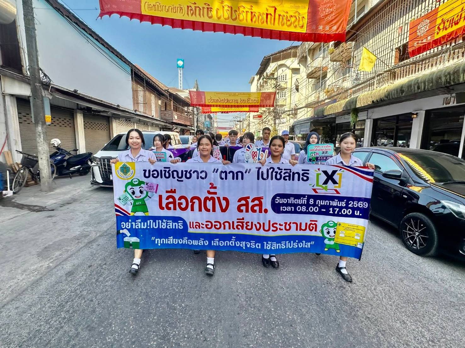 วันพฤหัสบดีที่ 5 กุมภาพันธ์ 2569 เวลา 09.00 น.ที่บริเวณลานที่ว่าการอำเภอแม่สอด อ.แม่สอด จ.ตาก นายกันต์พงษ์ พิพัฒมนตรีกุล นายอำเภอแม่สอด/ประธานกรรมการการเลือกตั้งประจำเขตเลือกตั้งที่ 2 จังหวัดตาก เป็นประธานในการจัดกิจกรรมรณรงค์เชิญชวนไปใช้สิทธิเลือกตั้งสมาชิกสภาผู้แทนราษฎรและการออกเสียงประชามติ (Big Day) เพื่อกระตุ้นให้ผู้มีสิทธิเลือกตั้งและออกเสียงประชามติเล็งเห็นถึงความสำคัญของการเลือกตั้งและการออกเสียงประชามติ รวมทั้งตระหนักถึงสิทธิและหน้าที่การเป็นพลเมืองในระบอบประชาธิปไตยอันมีพระมหากษัตริย์ทรงเป็นประมุข