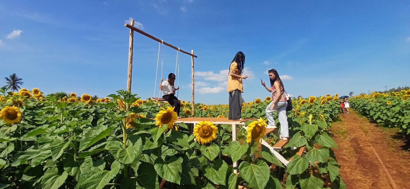 ด้านนางสาววรรณวิภา ศกุนรักษ์ เจ้าของไร่ทุ่งดอกทานตะวัน “อาม่า” เปิดเผยว่า ปีนี้ปลูกดอกทานตะวันบนพื้นที่กว่า 20 ไร่ นับเป็นปีที่ 6 แล้วที่เปิดให้นักท่องเที่ยวเข้าชม โดยปีนี้ดอกทานตะวันมีสีสันสวยงามสมบูรณ์เป็นพิเศษ เนื่องจากสภาพอากาศเอื้ออำนวย ส่งผลให้มีนักท่องเที่ยวเดินทางมาเที่ยวชมมากกว่าทุกปีที่ผ่านมา นอกจากนี้ ภายในไร่ยังได้มีการพัฒนาและเพิ่มจุดบริการนักท่องเที่ยว เพื่ออำนวยความสะดวกและสร้างประสบการณ์ที่ดีให้กับผู้มาเยือน อาทิ ร้านตำส้ม หรือส้มตำรสเด็ด ร้านกาแฟ ร้านจำหน่ายของฝากของที่ระลึก รวมถึงสินค้าทางการเกษตรจากชุมชน และผักปลอดสารพิษที่ปลูกภายในไร่ พร้อมจัดมุมถ่ายภาพหลากหลายจุด เพื่อให้นักท่องเที่ยวได้สัมผัสบรรยากาศธรรมชาติอย่างใกล้ชิด
