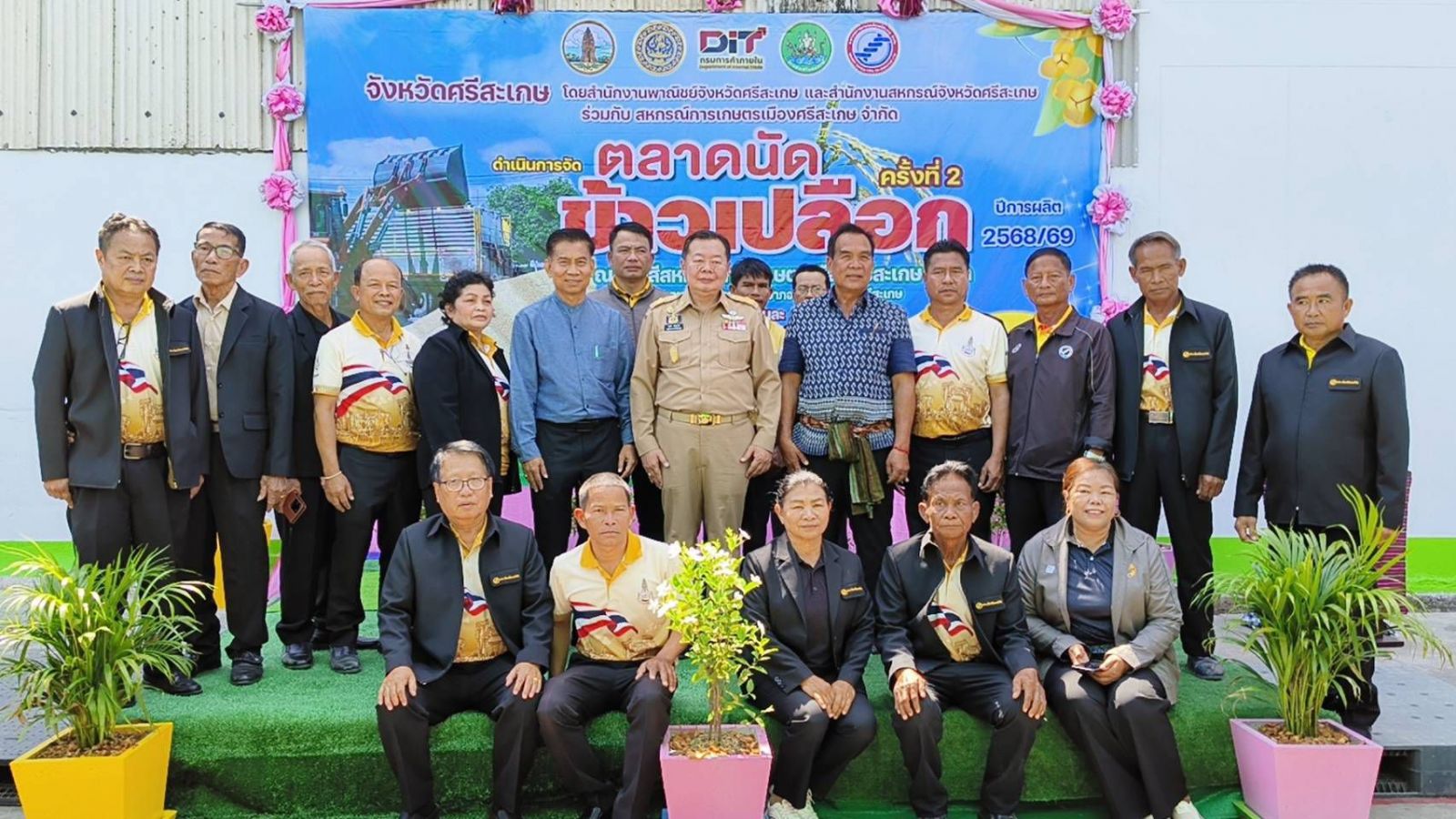 เมื่อวันที่ 9 ก.พ. 2569 ที่โรงสีสหกรณ์การเกษตรเมืองศรีสะเกษ จำกัด อ.เมือง จ.ศรีสะเกษ นายธาตรี สิริรุ่งวนิช รอง ผวจ.ศรีสะเกษ เป็นประธานในพิธีเปิดโครงการจัดตลาดนัดข้าวเปลือก ปีการผลิต 2568/69 จังหวัดศรีสะเกษ ครั้งที่ 2 และเปิดป้ายร้านค้าโรงสีสหกรณ์การเกษตรเมืองศรีสะเกษ จำกัด โดยมี นางสาวเอกลักษณ์ พันธ์เรือง หัวหน้ากลุ่มกำกับและพัฒนาเศรษฐกิจการค้า สำนักงานพาณิชย์จังหวัดศรีสะเกษ พร้อมด้วย นายอิทธิพล สีแดด ประธานสหกรณ์การเกษตรเมืองศรีสะเกษ จำกัด หัวหน้าส่วนราชการ ข้าราชการ เจ้าหน้าที่และเกษตรกรให้การต้อนรับและร่วมกิจกรรม โอกาสนี้ ได้มี นายสิริพงศ์ อังคสกุลเกียรติ ว่าที่ ส.ส.ศรีสะเกษ เขต 1 พรรคภูมิใจไทย เดินทางมาร่วมเป็นเกียรติภายในงานดังกล่าวด้วย