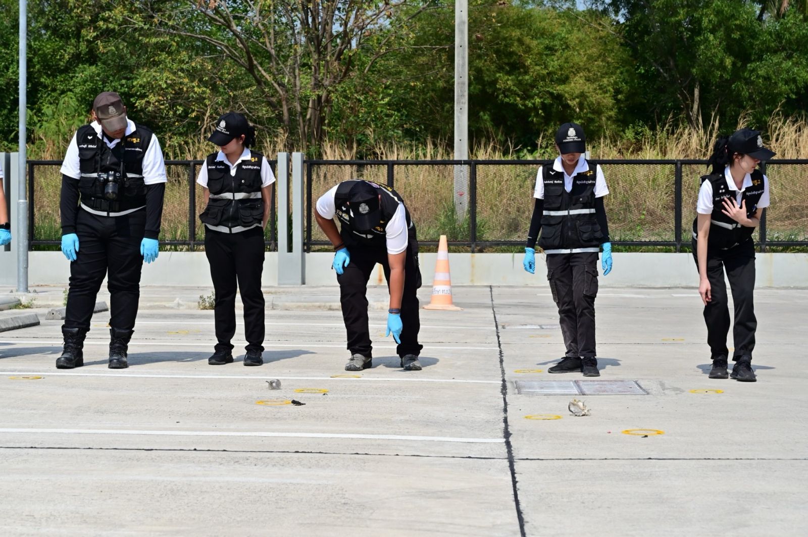 นอกจากนี้ ยังมีการฝึกปฏิบัติการตรวจสถานที่เกิดเหตุคดีระเบิดตามมาตรฐานสากล เพื่อให้ผู้เข้ารับการอบรมสามารถนำความรู้ไปประยุกต์ใช้ในการปฏิบัติงานจริงได้อย่างถูกต้อง มีประสิทธิภาพ และเป็นไปในทิศทางเดียวกัน โดยได้รับการถ่ายทอดความรู้จากเจ้าหน้าที่ผู้เชี่ยวชาญด้านการเก็บกู้และตรวจพิสูจน์วัตถุระเบิด หรือ EOD