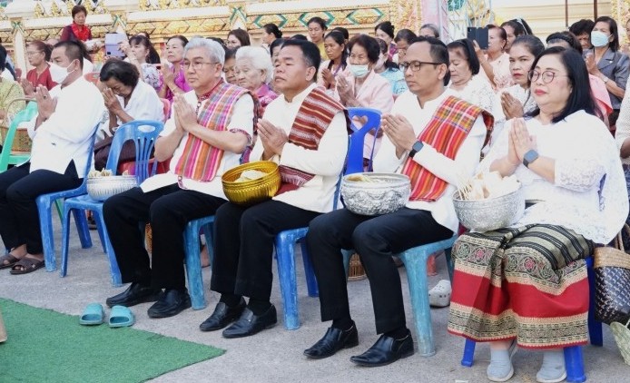 นายกฯมหาสารคามสืบสานพิธีถวายข้าวจี่-ข้าวเขียบ เฮ็ดบุญเดือนสาม
