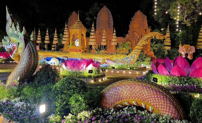 ซึ่งจากนอกจากพระปรางค์สามยอด และ นักท่องเที่ยวยังสามารถเดินเท้า ไปยังโบราณสถานใกล้เคียง พักฟังเพลงบรรเลงสดในสวน ถ่ายรูปสวยๆ กับสวนดอกไม้สวยๆ ณ เทวะสถานปรางค์แขก จากนั้น เดินเท้าต่อไปอีกไม่กี่ร้อยเมตรเพื่อเยี่ยมชมบรรยากาศภานในพระนาราย์ราชนิเวศน์ ซึ่งมีการประดับไฟยิ่งใหญ่ตะการตา สวยงามไม่แพ้ในโลก เพราะการจัดงานในปีนี้ ถือเป็นวาระพิเศษ.... ภายใต้ชื่องาน “อัตลักษณ์ละโว้ธานี เทิดสดุดีพระนารายณ์มหาราช พระพันปีหลวงปวงไทย” ซึ่งมีความหมายสำคัญ 2 ประการ อันได้แก่การเทิดพระเกียรติสมเด็จพระนารายณ์มหาราช พระมหากษัตริย์แห่งกรุงศรีอยุธยาผู้ทรงวางรากฐาน และสร้างความเจริญรุ่งเรืองให้แก่เมืองละโว้ธานี หรือจังหวัดลพบุรีในปัจจุบัน และเพื่อน้อมรำลึกในพระมหากรุณาธิคุณของสมเด็จพระนางเจ้าสิริกิติ์ พระบรมราชินีนาถ พระบรมราชชนนีพันปีหลวง ที่ทรงมีต่อชาวจังหวัดลพบุรีและปวงชนชาวไทย อีกด้วย