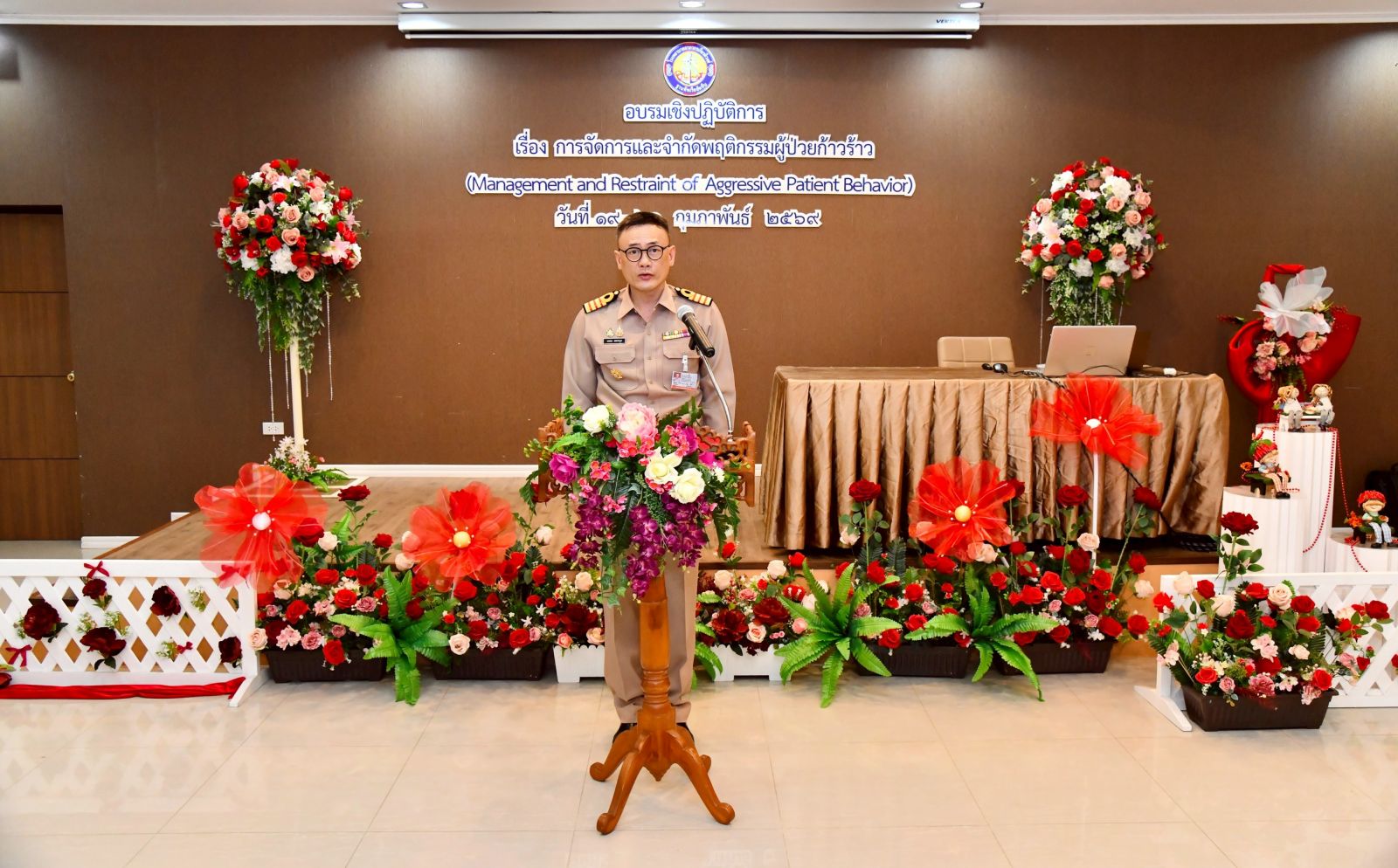 นาวาเอก นพดล เหตระกูล รองผู้อำนวยการโรงพยาบาลอาภากรเกียรติวงศ์ ฐานทัพเรือสัตหีบ เป็นประธานในพิธีเปิดการอบรมเชิงปฏิบัติการเรื่อง การจัดการและการจำกัดพฤติกรรมผู้ป่วยก้าวร้าว (Management and Restrain of Aggressive Patient Behavior) ในระหว่างวันที่ 19 – 20 กุมภาพันธ์ 2569 โดยกองสุขภาพจิตได้พบปัญหาพฤติกรรมก้าวร้าวในผู้ป่วย และพบได้บ่อยในสถานพยาบาล หรือหน่วยแพทย์ปฐมภูมิต่างๆ จึงได้จัดการอบรมเชิงปฏิบัติการในครั้งนี้ เพื่อมุ่งเน้นบุคลากรทางการแพทย์ให้มีความรู้ความสามารถ เข้าใจ รู้ถึงสาเหตุปัจจัยกระตุ้น ระดับความรุนแรงของความก้าวร้าว สามารถประเมินความเสี่ยงและเลือกใช้เทคนิคในการจำกัดพฤติกรรมได้อย่างเหมาะสมให้ทั้งผู้ป่วยและเจ้าหน้าที่ปลอดภัยเป็นไปตามมาตรฐานวิชาชีพ โดยมีคณะวิทยากรจากโรงพยาบาลพระมงกุฎเกล้า ผู้ที่เข้ารับการอบรมได้แก่ กำลังพล รพ.ฯ กำลังพลสายแพทย์ในพื้นที่สัตหีบ ณ ห้องประชุมลุมพิกานนท์ เมื่อวันที่ 19 กุมภาพันธ์ 2569