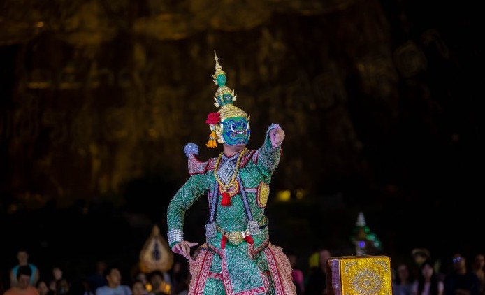 ส่วนไฮไลท์สำคัญของค่ำคืน คือการแสดงโขนรามเกียรติ์ชุดใหญ่ ตอน “ศึกสิบขุนสิบรถ” จากวิทยาลัยนาฏศิลปจันทบุรี ใช้นักแสดงกว่า 100 ชีวิต ถ่ายทอดความงดงามของศิลปะการแสดงชั้นสูงของไทย ท่ามกลางแสงสีเสียงและฉากหลังพระพุทธรูปแกะสลักหน้าผาเขาชีจรรย์ สร้างเสียงปรบมือดังกึกก้องจากผู้ชมทั้งชาวไทยและชาวต่างชาติ