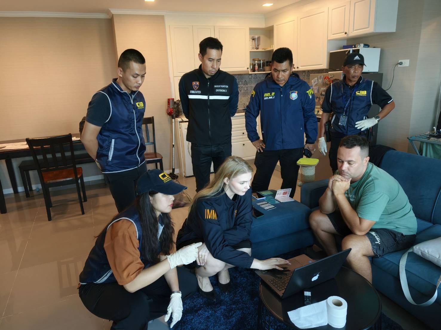 ร่วมกันจับกุม MR.SERGEI KHABAROV อายุ 35 ปี สัญชาติรัสเซีย ผู้ต้องหาตามหมายจับศาลจังหวัดชลบุรีที่ จ.102/2569 ลงวันที่ 23 ก.พ. 2569 ความผิดฐาน “โดยทุจริตหรือโดยหลอกลวงร่วมกันนำเข้าสู่ระบบคอมพิวเตอร์ซึ่งข้อมูลคอมพิวเตอร์อันเป็นเท็จ โดยประการที่น่าจะเกิดความเสียหายแก่ประชาชนและร่วมกันฉ้อโกงประชาชน หรือเปิดหรือยินยอม ให้ผู้อื่นใช้บัญชีเงินฝาก โดยมิได้เจตนาใช้เพื่อตนฯ” โดยจับกุมได้ที่บริเวณคอนโดฯแห่งหนึ่ง หน้าห้องเลขที่ 77/2108 ห้อง 419-420 ตึก B ภายในซอยบุญย์กัญจนา 5 ต.หนองปรือ อ.บางละมุง จ.ชลบุรี