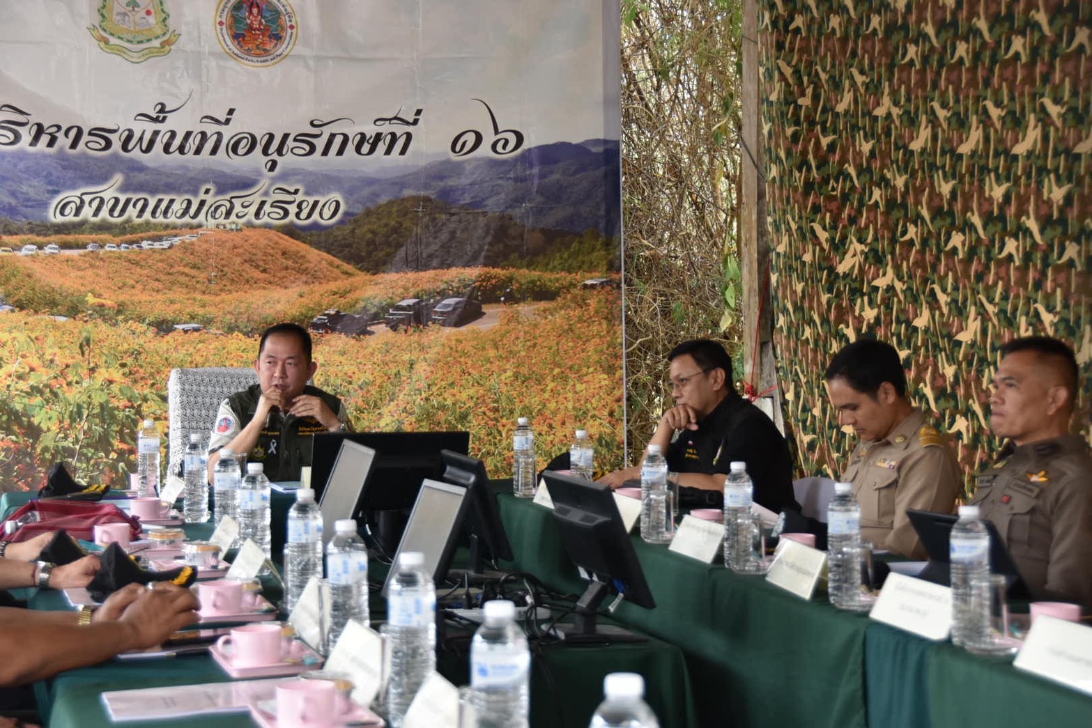 จากนั้น ที่ปรึกษารัฐมนตรีได้ประชุมร่วมกับสำนักบริหารพื้นที่อนุรักษ์ที่ 16 สาขาแม่สะเรียง กอ.รมน.จังหวัดแม่ฮ่องสอน ฝ่ายปกครอง และเจ้าหน้าที่ตำรวจ สภ.แม่ลาหลวง อำเภอแม่ลาน้อย เพื่อกำหนดกรอบการดำเนินงาน ตรวจสอบพยานหลักฐาน และเร่งรัดการบังคับใช้กฎหมายอย่างเคร่งครัด