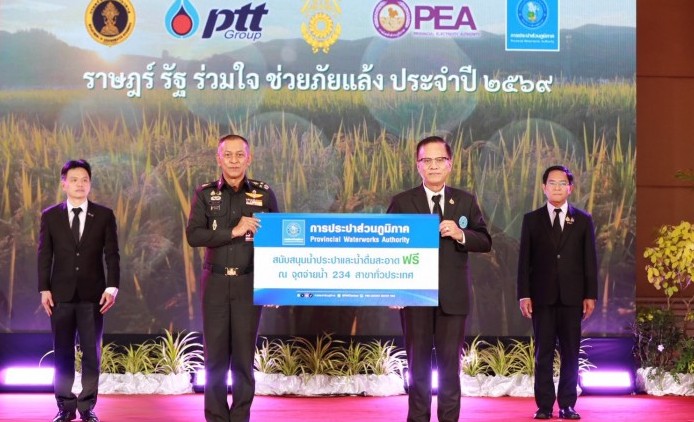 การประปาส่วนภูมิภาค (กปภ.) ผนึกความร่วมมือกับกองทัพบก กรมทรัพยากรน้ำบาดาล การไฟฟ้าส่วนภูมิภาค และบริษัท ปตท. จำกัด (มหาชน) ดำเนินโครงการ “ราษฎร์ รัฐ ร่วมใจ ช่วยภัยแล้ง” ประจำปี 2569 สนับสนุนน้ำประปาและน้ำดื่มสะอาดฟรี เพื่อช่วยเหลือและบรรเทาความเดือดร้อนประชาชนที่ประสบภัยแล้งทั่วประเทศ