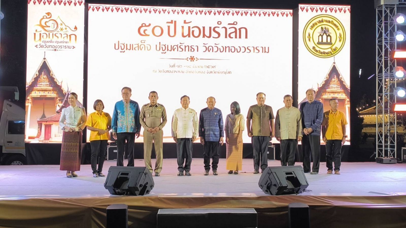 เมื่อเวลา 19.30 น วันที่ 12 มีนาคม 2569 ที่วัดวังทองวราราม อำเภอวังทอง จังหวัดพิษณุโลก นายนิสิต สวัสดิเทพ รองผู้ว่าราชการจังหวัดพิษณุโลก เป็นประธานเปิดโครงการเฉลิมพระเกียรติ 50 ปี ปฐมเสด็จ ปฐมศัทธา วัดวังทองวราราม น้อมสำนึกรำลึกในพระมหากรุณาธิคุณ ของพระบาทสมเด็จพระบรมชนกาธิเบศร มหาภูมิพลอดุลยเดชมหาราช บรมนาถบพิตร สมเด็จพระบรมราชชนนีพันปีหลวง สมเด็จพระเจ้าน้องนางเธอเจ้าฟ้าจุฬาภรณ์วลัยลักษณ์ อัครราชกุมารี กรมพระศรี สวางควัฒน วรขัตติยราชนารี เสด็จพระราชดำเนินตัดหวายลูกนิมิตอุโบสถ และเสด็จทอดพระเนตรพระราชทานทุนทรัพย์ส่วนพระองค์บูรณะอุโบสถโบราณ วัดวังทองวราราม โดยมี ร้อยตำรวจตรีสุชาติ กลิ่นสังข์ นายกเทศมนตรีตำบลวังทอง พร้อมด้วยคณะกรรมการดำเนินโครงการ ให้การต้อนรับ