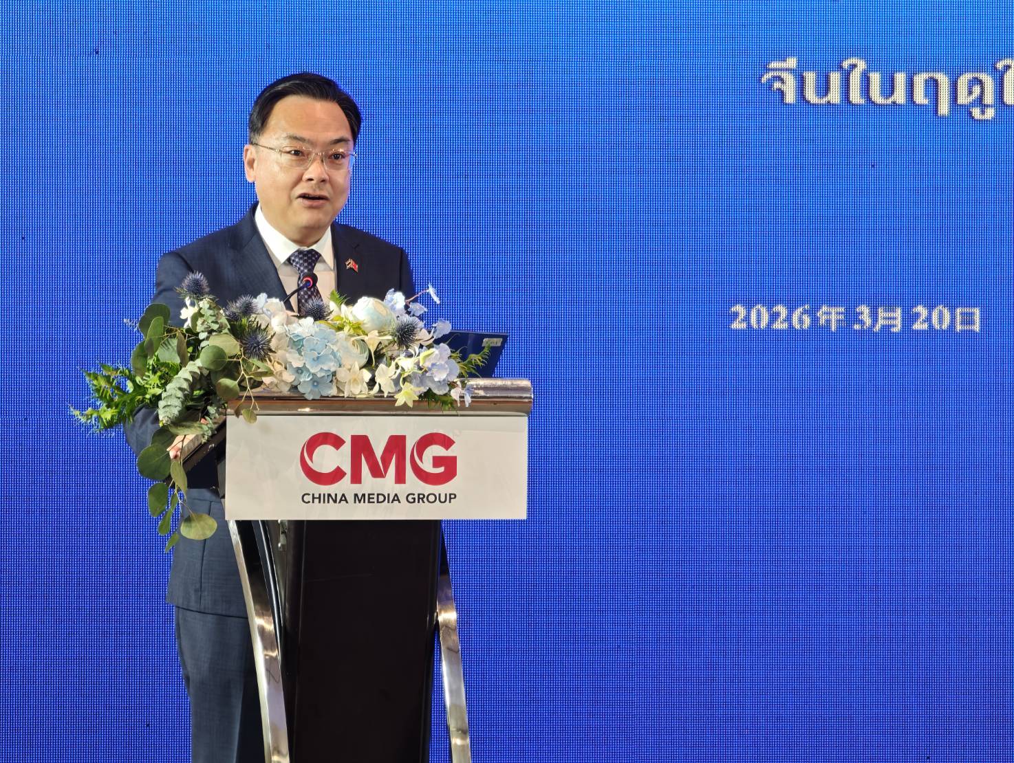 China Media Group (CMG) จัดเวทีเสวนาระดับนานาชาติในหัวข้อ “จีนในฤดูใบไม้ผลิ : การพัฒนาของจีนและโอกาสของโลก” เมื่อวันที่ 20 มีนาคม 2569 ณ โรงแรมอวานี รัชดา กรุงเทพฯ นายเซิ่น ไห่ส่ง รัฐมนตรีช่วยว่าการกระทรวงสื่อสารมวลชนและผู้อำนวยการ China Media Group ได้กล่าวสุนทรพจน์ผ่านทางวิดีโอ ในหัวข้อ บทบาทของสื่อในการส่งเสริมความเข้าใจระหว่างประเทศ และการสร้างพื้นที่แลกเปลี่ยนมุมมองเกี่ยวกับการพัฒนาในยุคโลกาภิวัตน์