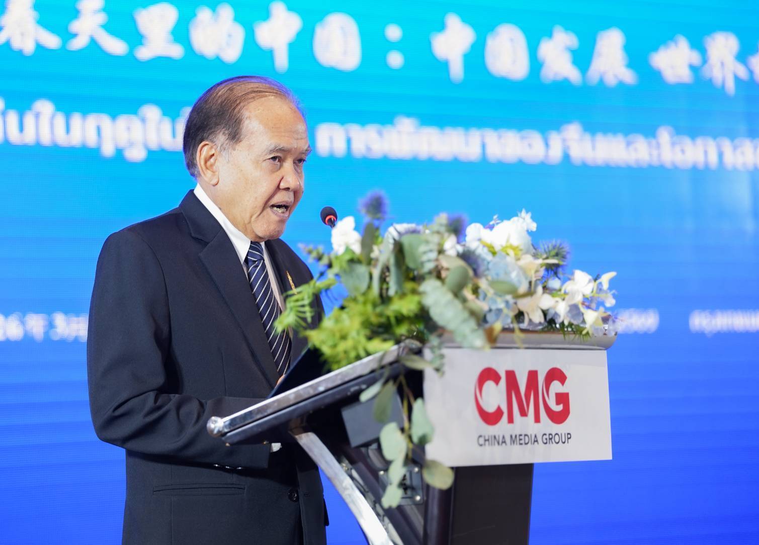 นายพินิจ จารุสมบัติ อดีตรองนายกรัฐมนตรีไทย กล่าวว่าการพัฒนาของจีนไม่ได้เป็นเพียงเรื่องของจีน แต่ยังเป็นแรงขับเคลื่อนสำคัญของเศรษฐกิจโลก โดยเฉพาะความมุ่งมั่นในการพัฒนาคุณภาพสูง ซึ่งได้เปิดโอกาสอันกว้างขวางให้กับประเทศไทย งานเสวนาในครั้งนี้จึงมีความสำคัญอย่างยิ่ง โดยมี CMG ทำหน้าที่เป็นสะพานเชื่อมข้อมูลและความเข้าใจอันดีระหว่างประชาชนทั้งสองชาติมาโดยตลอด จากสายสัมพันธ์อันลึกซึ้งที่ว่า "จีน-ไทยใช่อื่นไกล พี่น้องกัน" ปัจจุบันความสัมพันธ์ของทั้งสองประเทศได้ก้าวสู่บริบทใหม่ ที่มุ่งเน้นความร่วมมือคุณภาพสูงในทุกมิติ เพื่อร่วมกันขับเคลื่อนการสร้างประชาคมไทย-จีนที่มีอนาคตร่วมกันต่อไป