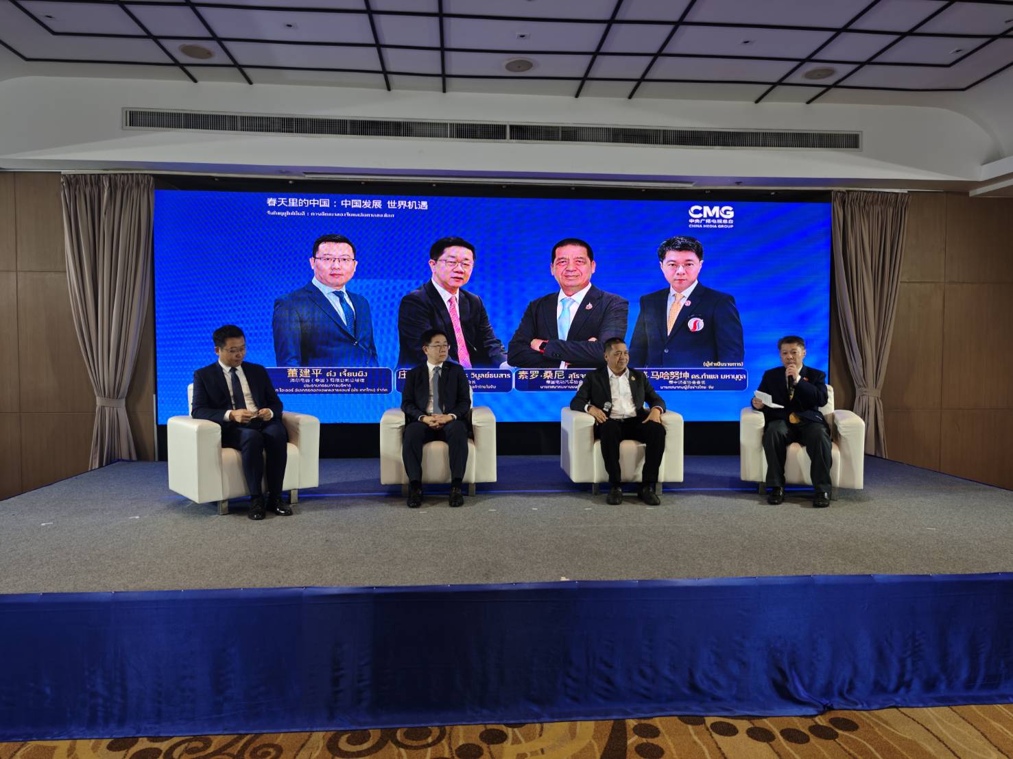 นางเลี่ยว ลี่ รองผู้อำนวยการสำนักงาน CMG Asia-Pacific ตัวแทนผู้จัดงานได้กล่าวต้อนรับผู้เข้าร่วมงาน พร้อมเรียนเชิญ นายจาง เจี้ยนเว่ย เอกอัครราชทูตสาธารณรัฐประชาชนจีนประจำประเทศไทย พร้อมด้วยผู้บริหารระดับสูงจากภาครัฐ ภาคเอกชน นักวิชาการ และสื่อมวลชนเข้าร่วมกันอย่างคับคั่ง เพื่อแลกเปลี่ยนมุมมองเกี่ยวกับแนวโน้มเศรษฐกิจ และโอกาสความร่วมมือระหว่างไทย-จีนในอนาคต โดยเฉพาะในด้านเศรษฐกิจและเทคโนโลยี