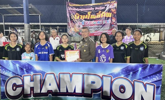 วันนี้ 21 มี.ค.69 นายสุนทร โภคา นายอำเภอบ้านโพธิ์ พ.ต.อ.จิรวัฒน์ ยอดกระโหมผกก.สภ. บ้านโพธิ์ นายบรรจง นิสภวาณิชย์ ประธาน กต.ตร.สภ.บ้านโพธิ์ นายรุ่งโรจน์ กิติพิศาลกุล นายกเทศมนตรีตำบลบ้านโพธิ์ พร้อมด้วยคณะ กต.ตร.สภ.บ้านโพธิ์, วิทยาลัยเทคโนโลยีอาเซียนไทยบ้านโพธิ์ และ เทศบาลบ้านโพธิ์ เปิดการจัดกิจกรรมโครงการ แข่งขันกีฬาฟุตบอลต้านยาเสพติด ประจำปี 2569 ”บ้านโพธิ์คัพ” (นักเรียน 7 คน)