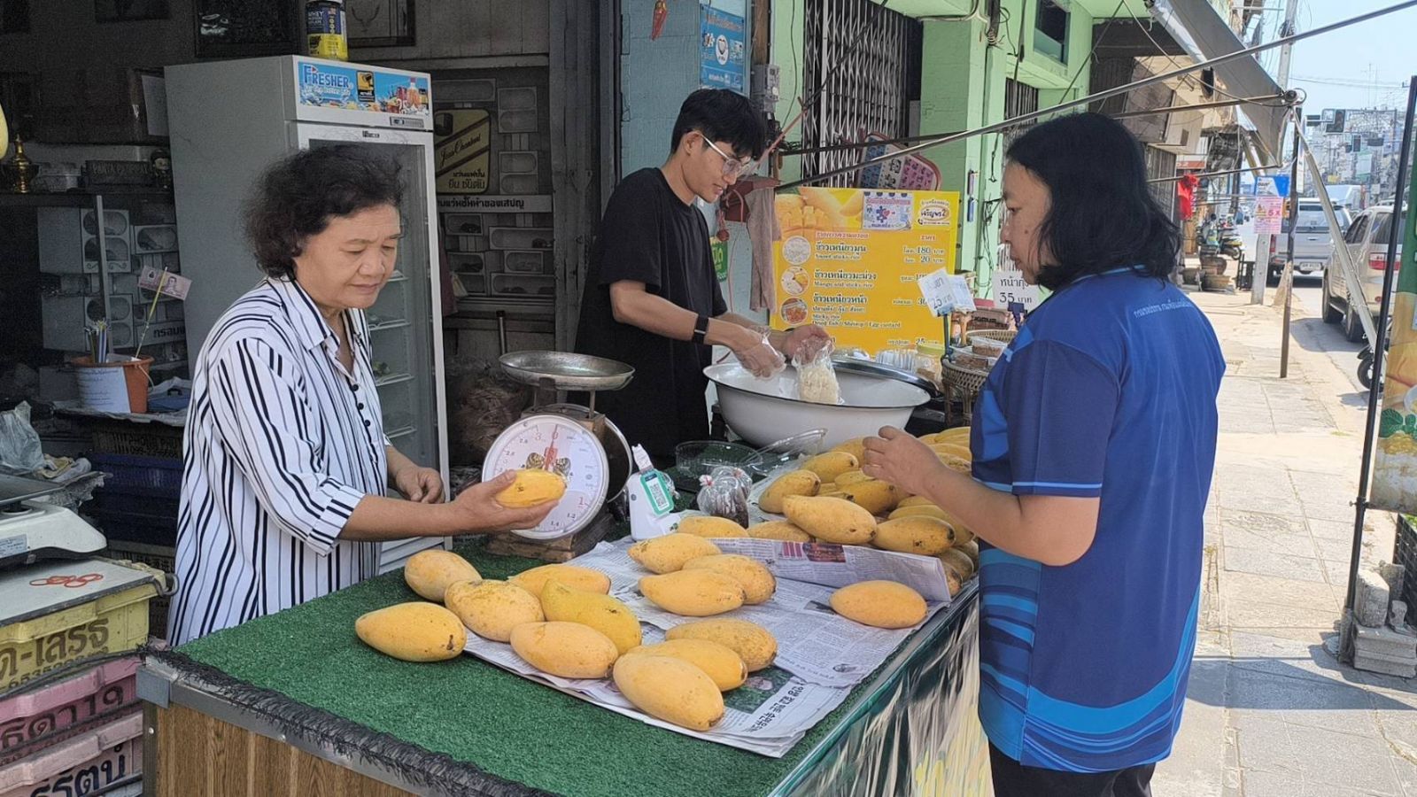 ผู้สื่อข่าวจังหวัดพิษณุโลกลงพื้นที่ร้านจำหน่ายข้าวเหนียมูนเจ้าอร่อย รับประทานคู่กับมะม่วงน้ำดอกไม้สีทอง พิษณุโลก เป็นสินค้าที่ได้รับการขึ้นทะเบียนสิ่งบ่งชี้ทางภูมิศาสตร์ (GI) ตั้งแต่ปี 2566 โดยมีลักษณะเด่นที่ความหวานหอม เนื้อแน่นสีเหลืองเข้ม ไม่มีเสี้ยน และเมล็ดลีบบาง เป็นผลไม้เศรษฐกิจสำคัญที่มีคุณภาพระดับพรีเมียมสำหรับการส่งออกไปยังต่างประเทศ