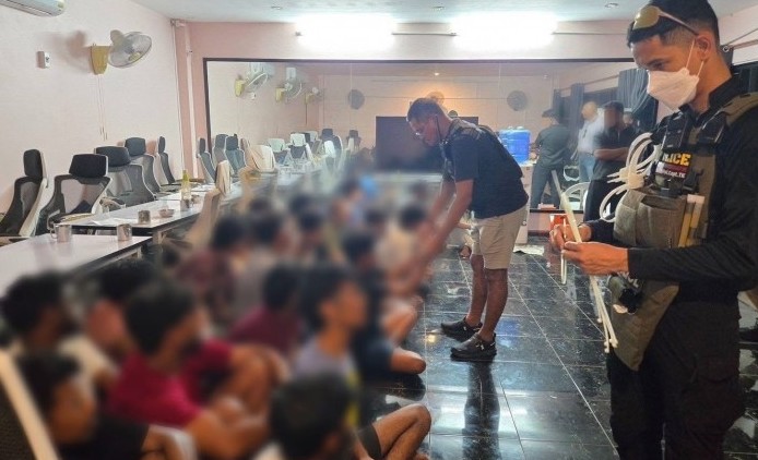 ชุดสืบสวน กก.สส.บก.ตม.3 เข้าจับผู้ต้องหาสัญชาติอินเดียรวม 25 ราย คาวิลล่าลับ ย่านบางละมุง จ.ชลบุรี หลังสายลับแจ้งเบาะแสพบพฤติกรรมต้องสงสัยในครั้งนี้ ถูกเปิดเผยขึ้นเมื่อวันที่ 24 มีนาคม 2569 สืบเนื่องจาก พล.ต.ท.ภาณุมาศ บุญญลักษม์ ผบช.สตม. พร้อมด้วย พล.ต.ต.พันธนะ นุชนารถ รอง ผบช.สตม. และ พล.ต.ต.ทรงโปรด สิริสุขะ ผบก.ตม.3 สั่งการให้ชุดปฏิบัติการสืบสวน กก.สส.บก.ตม.3 นำกำลังเข้าตรวจค้นวิลล่าหลังหนึ่ง ใน ต.หนองปรือ อ.บางละมุง จ.ชลบุรี หลังได้รับรายงานว่ามีการใช้สถานที่ดังกล่าวเป็นฐานปฏิบัติการเว็บพนันออนไลน์รายใหญ่ โดยพบว่าวิลล่าดังกล่าวมีการรักษาความปลอดภัยอย่างเข้มงวด บริเวณโรงจอดรถถูกดัดแปลงเป็นห้องกระจกทำเป็นออฟฟิศมิดชิด มีการคุมผ้าใบปิดบังช่องประตูและรั้วไม่ให้บุคคลภายนอกสังเกตเห็น