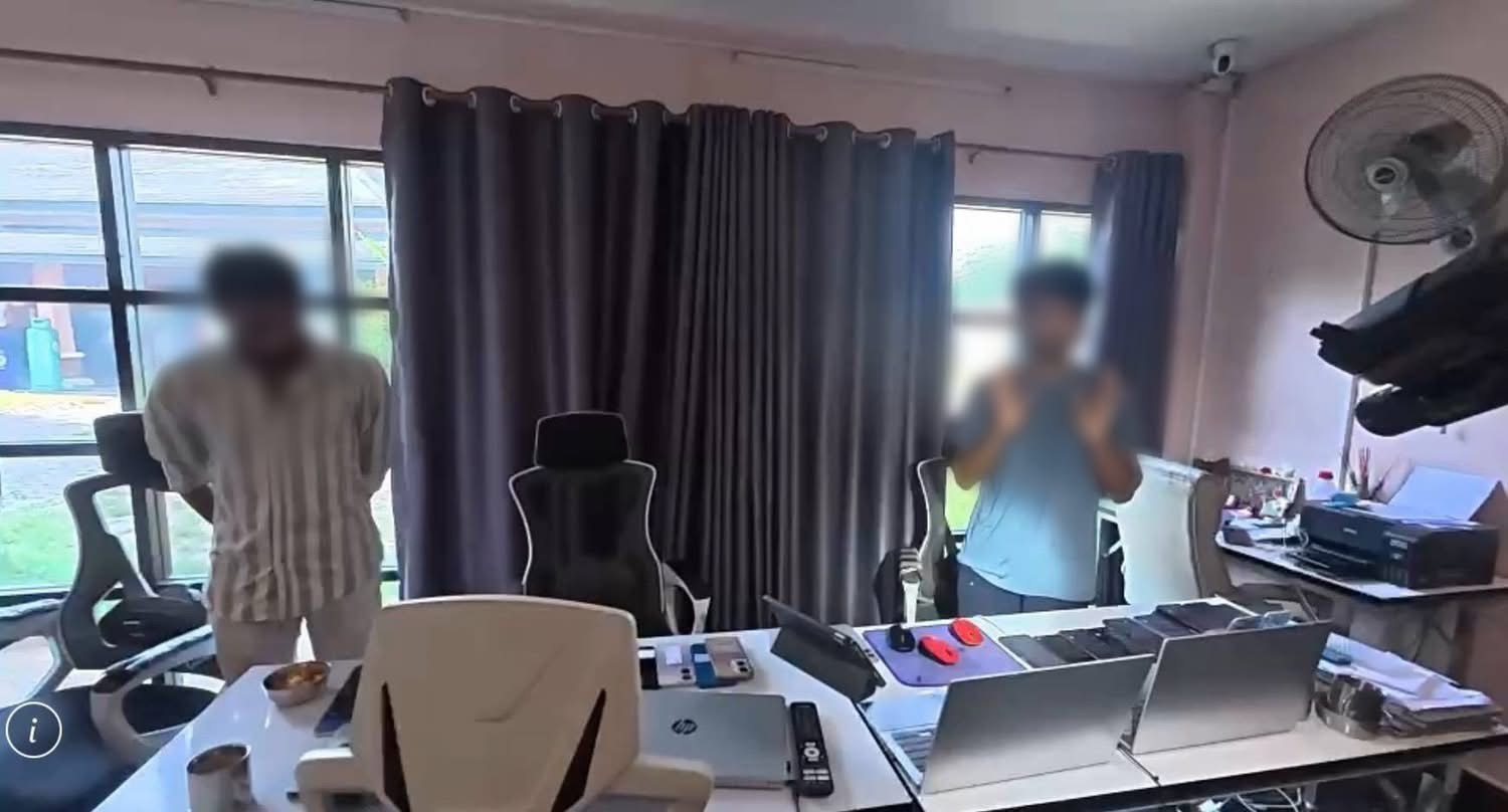 เมื่อเจ้าหน้าที่บุกเข้าไปค้น ภายใน พบชาวต่างชาติ สัญชาติอินเดีย รวม 25 ราย กำลังแยกปฏิบัติหน้าที่ เป็นผู้จัดการการตลาด บัญชี และแอดมินดูแลลูกค้า โดยมีการกักตัวพนักงานไว้ภายในบ้าน ใช้เครื่องปั่นไฟและเตรียมอาหารแช่แข็งไว้ สำหรับประกอบอาหารภายในบ้าน เพื่อหลีกเลี่ยงการเดินทางออกนอกพื้นที่ให้ถูกสังเกตเห็น
