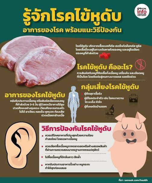 ทั้งนี้หากพบผู้มีอาการเสี่ยง เช่น ไข้สูง เวียนศีรษะ หูอื้อและมีประวัติรับประทาน สัมผัสหมูดิบทางบาดแผลแล้วมีอาการเข้าข่ายภายใน 7 วันหลังสัมผัสให้แนะนำพบแพทย์ทันที