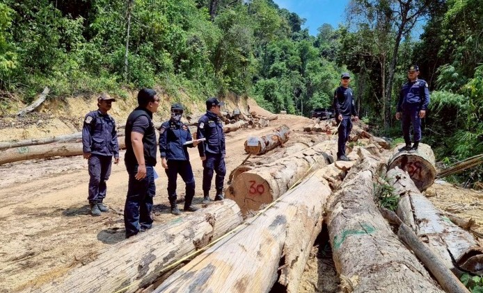 วันที่ (10 เมษายน 2569) เวลา 14.30 น. นายสุชาติ ชมกลิ่น รัฐมนตรีว่าการกระทรวงทรัพยากรธรรมชาติและสิ่งแวดล้อม มอบหมายให้ พล.ต.ต.นันทชาติ ศุภมงคล ที่ปรึกษารัฐมนตรีว่าการกระทรวงทรัพยากรธรรมชาติและสิ่งแวดล้อม พร้อมด้วย นายนิพนธ์ จำนงศิริศักดิ์ รองปลัดกระทรวงทรัพยากรธรรมชาติและสิ่งแวดล้อม เดินทางเข้าพบ พล.ต.ต.จรูญเกียรติ ปานแก้ว รอง ผบช.ก. และ พล.ต.ต.สุวัฒน์ แสงนุ่ม รอง ผบช.ก. เพื่อส่งมอบพยานหลักฐานและแจ้งความดำเนินคดีกรณีการตรวจยึดไม้ท่อนจำนวนกว่า 438 ท่อน ปริมาตร 461.85 ลูกบาศก์เมตร ในเขตป่าเขาปากเตรียม – อ่าวจาก จังหวัดระนอง พร้อมขยายผลตรวจสอบการออกเอกสารสิทธิ น.ส.3 ก. เร่งเจ้าหน้าที่จะร่วมกันขยายผลตรวจสอบเอกสารสิทธิ์ในที่ดิน โดยจะขอคัดระวางหนังสือรับรองการทำประโยชน์ นส. 3 ก. และสารบบแปลงที่ดินทั้งหมด กับสำนักงานที่ดินจังหวัดระนอง เพื่อใช้ประกอบการ พิจารณาดำเนินการ โดยการดำเนินงานจะแบ่งออกเป็น 3 กลุ่ม กลุ่มแรกเป็นกลุ่ม นส. 3 ก. ที่คณะกรรมการระดับจังหวัดระนอง มีความเห็นให้เพิกถอน กลุ่มที่ 2 เป็น นส. 3 ก. ที่เกิดจากการออกเอกสารสิทธิ์โดยไม่มีหลักฐานเดิม และกลุ่มสุดท้าย เป็นกลุ่ม นส. 3 ก. ที่อ้างมาจากเอกสารแบบแจ้งการครอบครองที่ดิน (สค. 1)