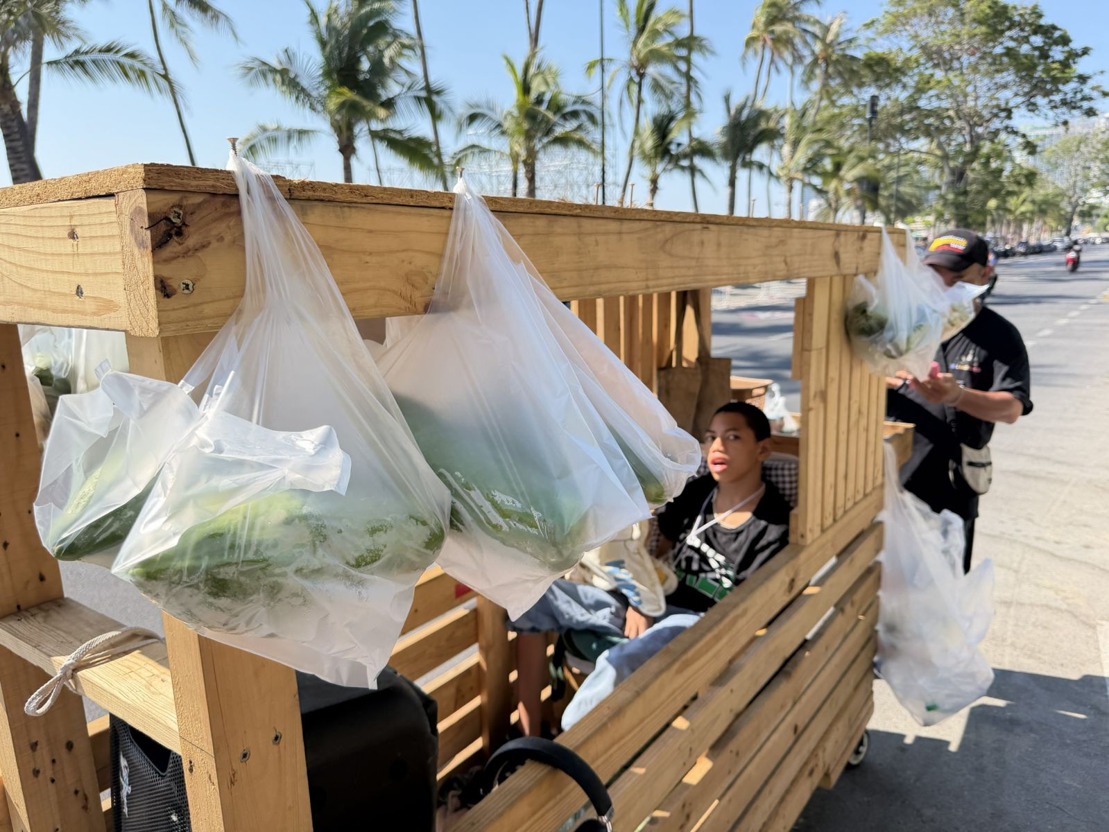 ย้อนชีวิตก่อนหน้านี้ พี่เดช เดินทางมาจากภาคอีสานเพื่อหางานทำในพัทยา เริ่มจากการเดินขายดอกไม้ตามสถานบันเทิง ก่อนจะปรับเปลี่ยนมาขายผักสด กระทั่งช่วง 4-5 ปีที่ผ่านมา ลูกชายเริ่มโตขึ้น จึงมีแนวคิดสร้างรถเข็นขนาดใหญ่ขึ้น โดยนำไม้เก่าและล้อมาประกอบเป็นรถพ่วงที่สามารถบรรทุกสินค้าได้มากขึ้น และจัดพื้นที่สำหรับให้ลูกชายนอนพักระหว่างทาง