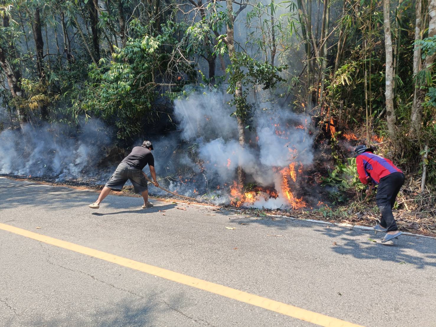นายสมพิศ มหัตกีรติ ผู้ใหญ่บ้านหมู่ที่1 ตำบลปิล๊อก อำเภอทองผาภูมิ จังหวัดกาญจนบุรี เปิดเผยผู้สื่อข่าวว่า เมื่อวานนี้ได้เกิดไฟป่าไหม้ทางไปหมู่บ้านอีต่อง จึงประสานกับเจ้าหน้าที่องค์การบริหารส่วนตำบลปิล็อก นำรถน้ำฉีดดับไฟที่กำลังลุกไหม้ข้างทาง โดยตนลงพื้นที่กับเจ้าหน้าที่ร่วมดับไฟป่าในครั้งนี้และขอฝากเตือนประชาชนและนักท่องเที่ยวขึ้นลงบ้านอีต่อง ช่วงนี้ ขับขี่กันอย่างระมัดระวัง เนื่องจากมีไฟป่า ทำให้ กิ่งไม้ และต้นไม้ล้ม ก้อนหินร่วง ไหลจากเขาสู่บนท้องถนน อาจเกิดอันตรายต่อชีวิตและทรัพย์สินได้