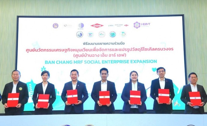 22 เมษายน 2569 –กระทรวงการอุดมศึกษา วิทยาศาสตร์ วิจัยและนวัตกรรม โดยสถาบันวิจัยวิทยาศาสตร์และเทคโนโลยีแห่งประเทศไทย (วว.) และหน่วยบริหารจัดการทุนด้านการเพิ่มความสามารถการแข่งขัน(บพข.)ร่วมกับ กลุ่มบริษัท ดาว ประเทศไทย (Dow) อำเภอบ้านฉาง สำนักงานนิคมอุตสาหกรรมดับบลิวเอชเอตะวันออก (มาบตาพุด) และเทศบาลในพื้นที่ ลงนามบันทึกข้อตกลงความร่วมมือ (MOU) เพื่อขยายผลและยกระดับการดำเนินงานศูนย์นวัตกรรมเศรษฐกิจหมุนเวียนเพื่อจัดการและแปรรูปวัสดุรีไซเคิลครบวงจร (Ban Chang MRF) ณ ห้องประชุมทาวน์ฮอลล์ กลุ่มบริษัท ดาว ประเทศไทย ในนิคมอุตสาหกรรมเอเซีย อำเภอบ้านฉาง จังหวัดระยอง นับเป็นความร่วมมือครั้งสำคัญของภาครัฐ ภาคเอกชน ภาควิจัย และภาคท้องถิ่น