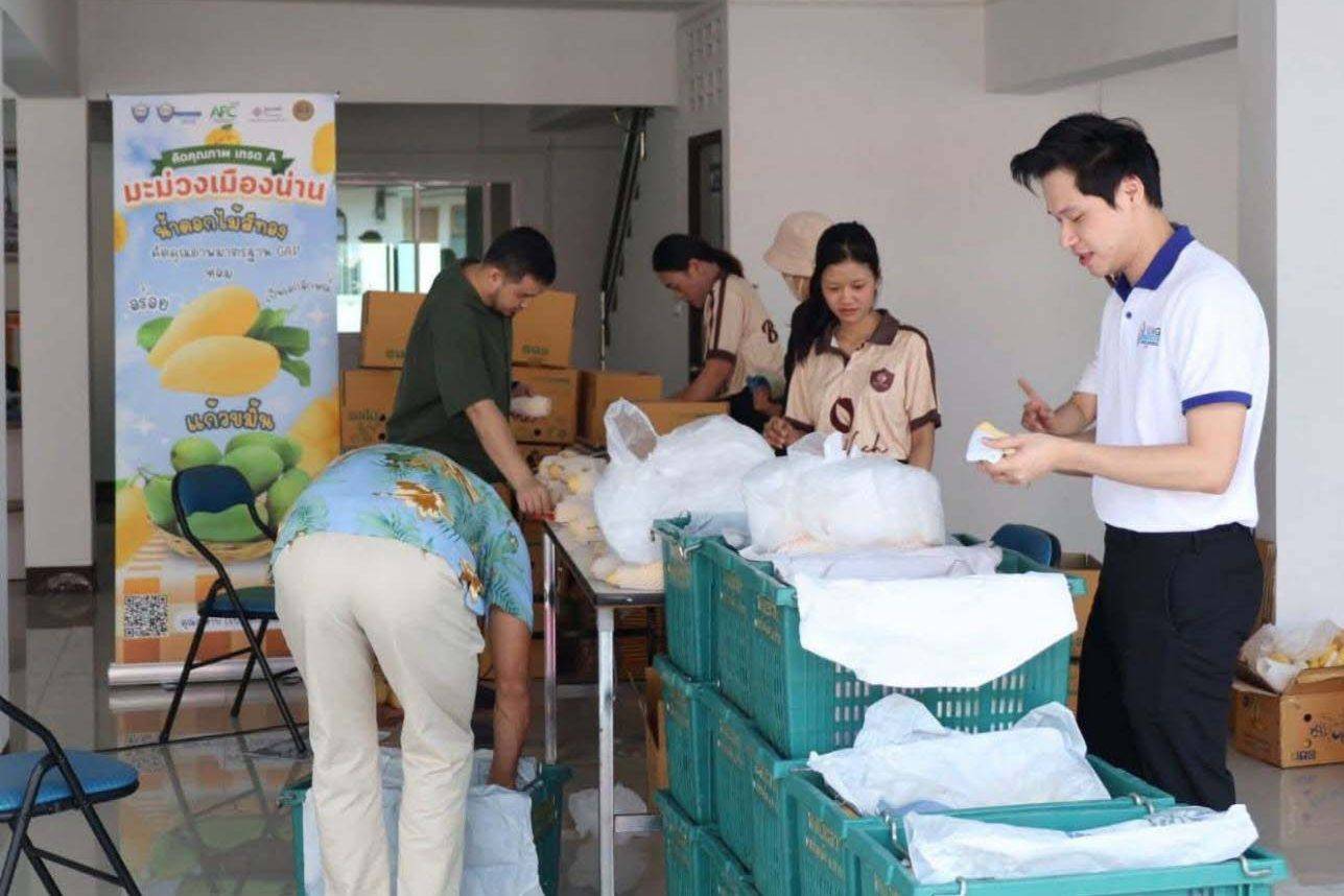 น่าน – หอการค้าจังหวัดน่าน ผนึกกำลังร่วมกับ ศูนย์อำนวยการประสานงานการแก้ไขปัญหาเกษตรกร (AFC) และ สำนักงานพาณิชย์จังหวัดน่าน พร้อมเครือข่ายนักธุรกิจรุ่นใหม่ (YEC) และอาสาสมัคร ลงพื้นที่ช่วยเหลือเกษตรกรผู้ปลูกมะม่วงในตำบลเมืองจัง อำเภอภูเพียง จังหวัดน่าน หลังได้รับผลกระทบจากสถานการณ์ราคาน้ำมันที่ปรับตัวสูงขึ้น ส่งผลให้พ่อค้าคนกลางชะลอการเข้ารับซื้อ และเสี่ยงเกิดภาวะผลผลิตล้นตลาดในช่วงฤดูกาล