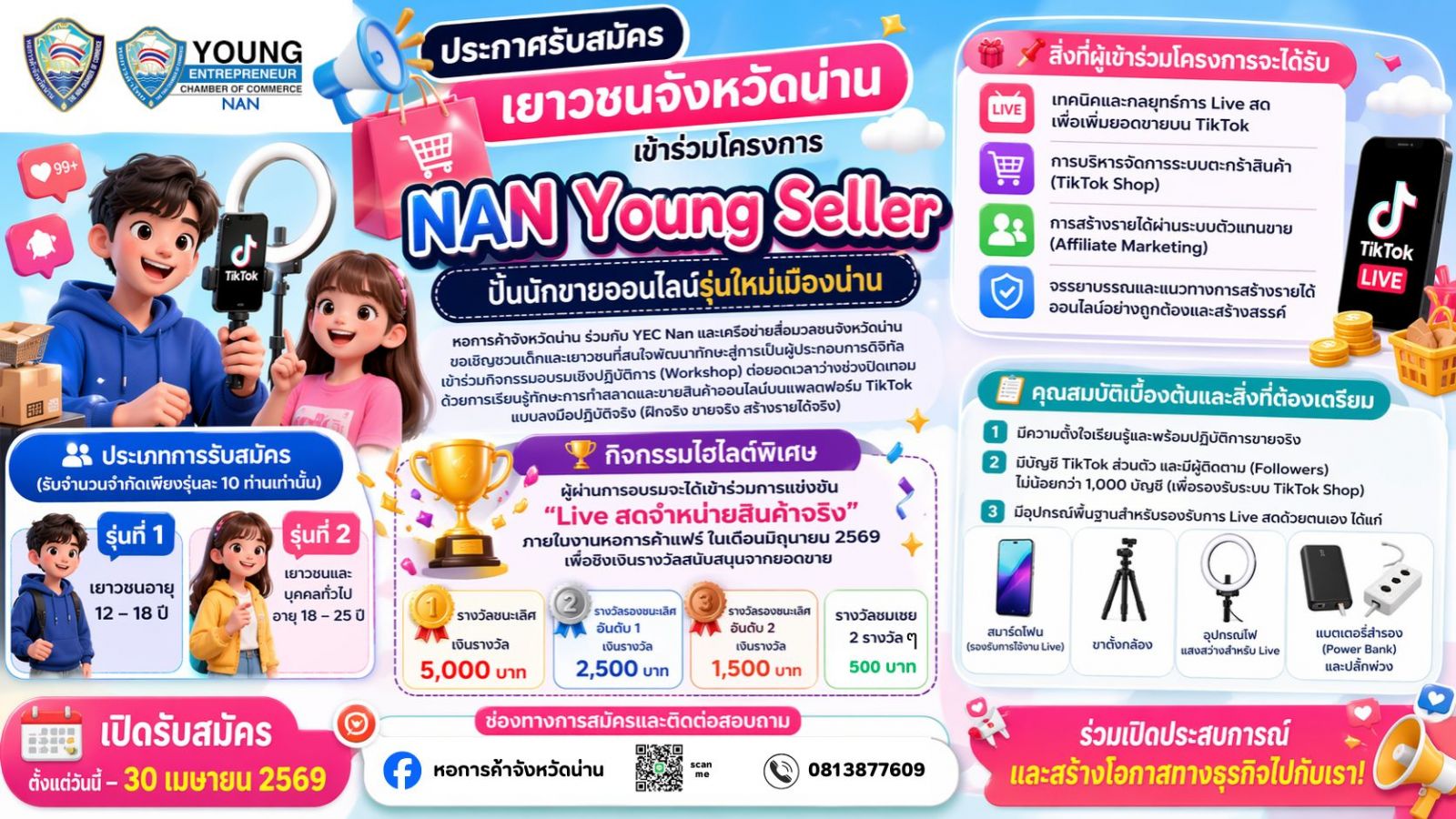 #NANYoungSeller #หอการค้าจังหวัดน่าน #YECNan #สื่อมวลชนน่าน #สร้างรายได้ออนไลน์ #TikTokShop #นักขายรุ่นใหม่ #ปิดเทอมสร้างรายได้