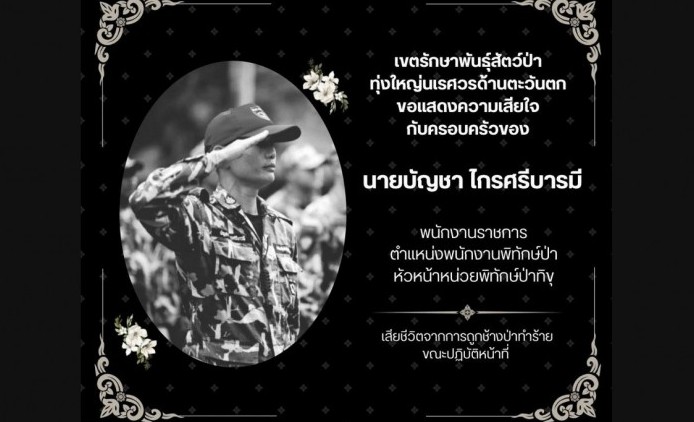 วันนี้ 24 พ.ย.68 ผู้สื่อข่าวรายงานว่า นางสาวอรยุพา สังขะมาน เลขาธิการมูลนิธิสืบนาคะเสถียร เปิดเผยว่า จากกรณีนายบัญชา ไกรศรีบารมี หรือครูตู้ อายุ 45 ปี พนักงานราชการ ตำแหน่งพนักงานพิทักษ์ป่า หัวหน้าหน่วยพิทักษ์ป่าทิขุ เขตรักษาพันธุ์สัตว์ป่าทุ่งใหญ่นเรศวร ด้านตะ...