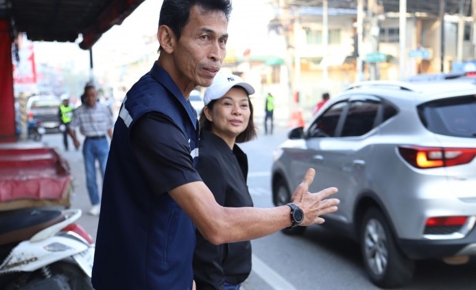 บริหารเทศบาลตะเคียนเตี้ย ลงพื้นที่จัดระเบียบจราจรช่วงเร่งด่ว