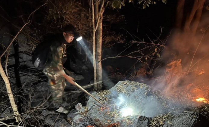 กาญจนบุรี - เคสแรกของปี! จนท.อช.เอราวัณสนธิกำลังสกัดไฟป่า พ