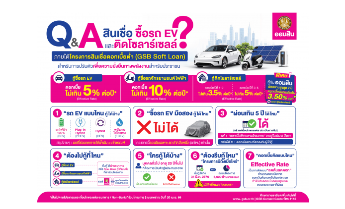 ธนาคารออมสิน หนุนรัฐช่วยคนไทยรับมือวิกฤตพลังงาน เปิดให้กู้ติดโซลาร์เซลล์ดอกเบี้ยเริ่มต้น 3.5% ต่อปี ด้านสินเชื่อ EV ให้กู้ผ่าน Non-Bank วงเงินรวม 5,000 ลบ. ภายใต้โครงการ GSB Soft Loan นายทรงพล ชีวะปัญญาโรจน์ ผู้อำนวยการธนาคารออมสิน เปิดเผยว่า ตามที่คณะรัฐมนต...